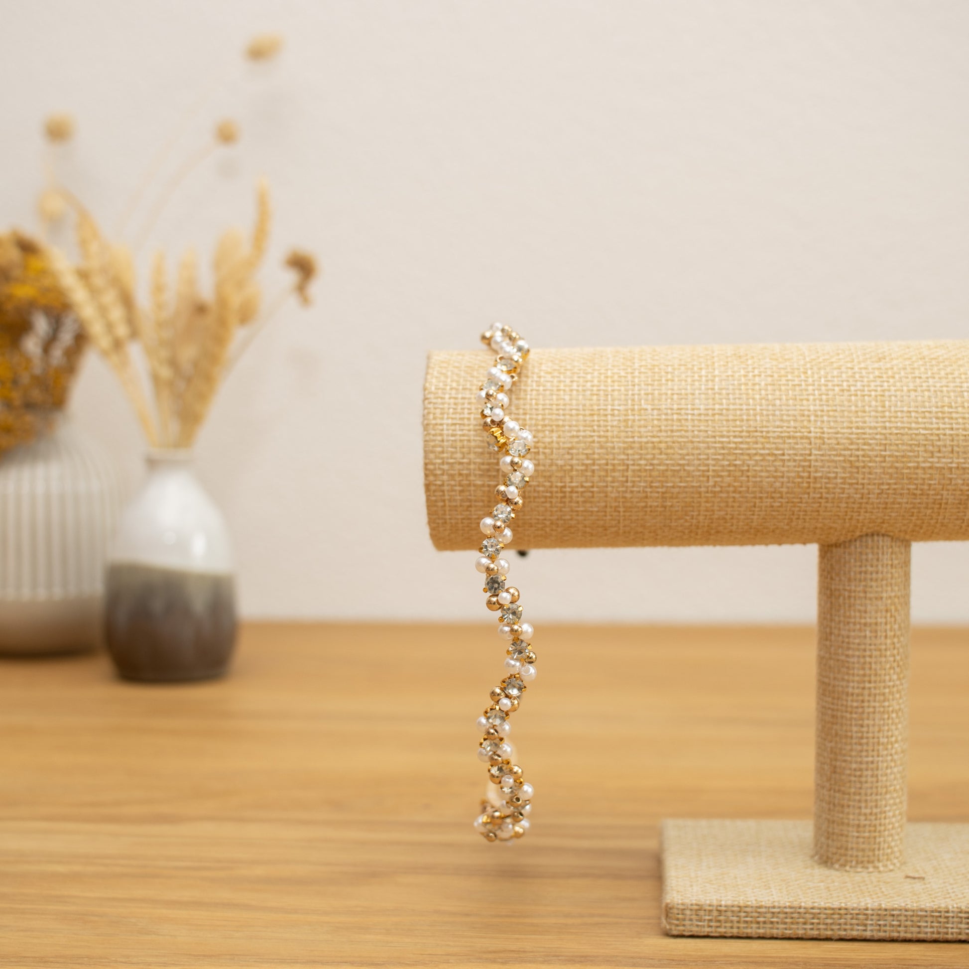 Mit unserem Haarreif "Grace" verleihen Sie Ihrem Haar mühelos einen Hauch von zeitloser Eleganz und Stil. Dieses vielseitige Accessoire ist ein Must-have für jede Schmuckkollektion und eignet sich hervorragend als Geschenk für sich selbst oder Ihre Liebsten!