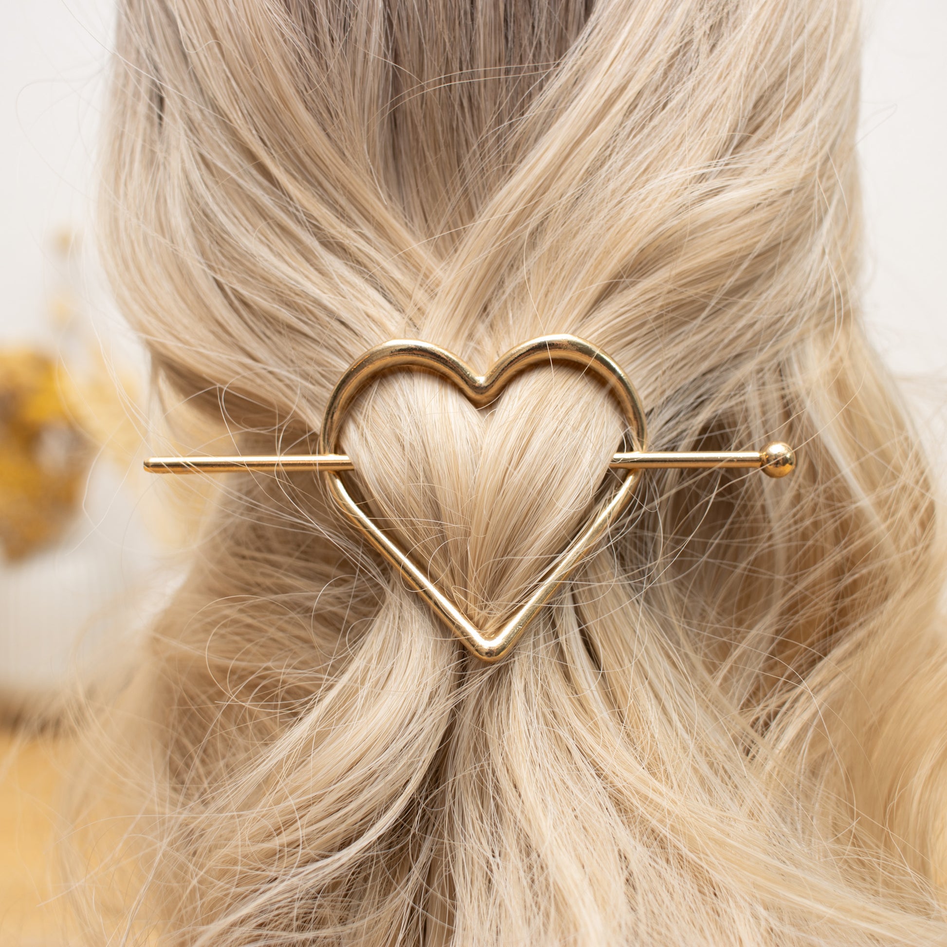 Romantisches Design: Die Stecknadel wird durch ein zartes Herz in Gold gestützt, das Ihrer Frisur einen liebevollen und femininen Touch verleiht.